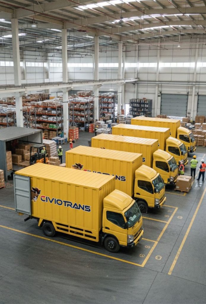 Dengan jaringan distribusi yang luas dan dukungan fasilitas gudang yang aman, Civiotrans memastikan setiap pengiriman berjalan tepat, terkontrol, dan dapat diandalkan untuk kebutuhan bisnis maupun individu.